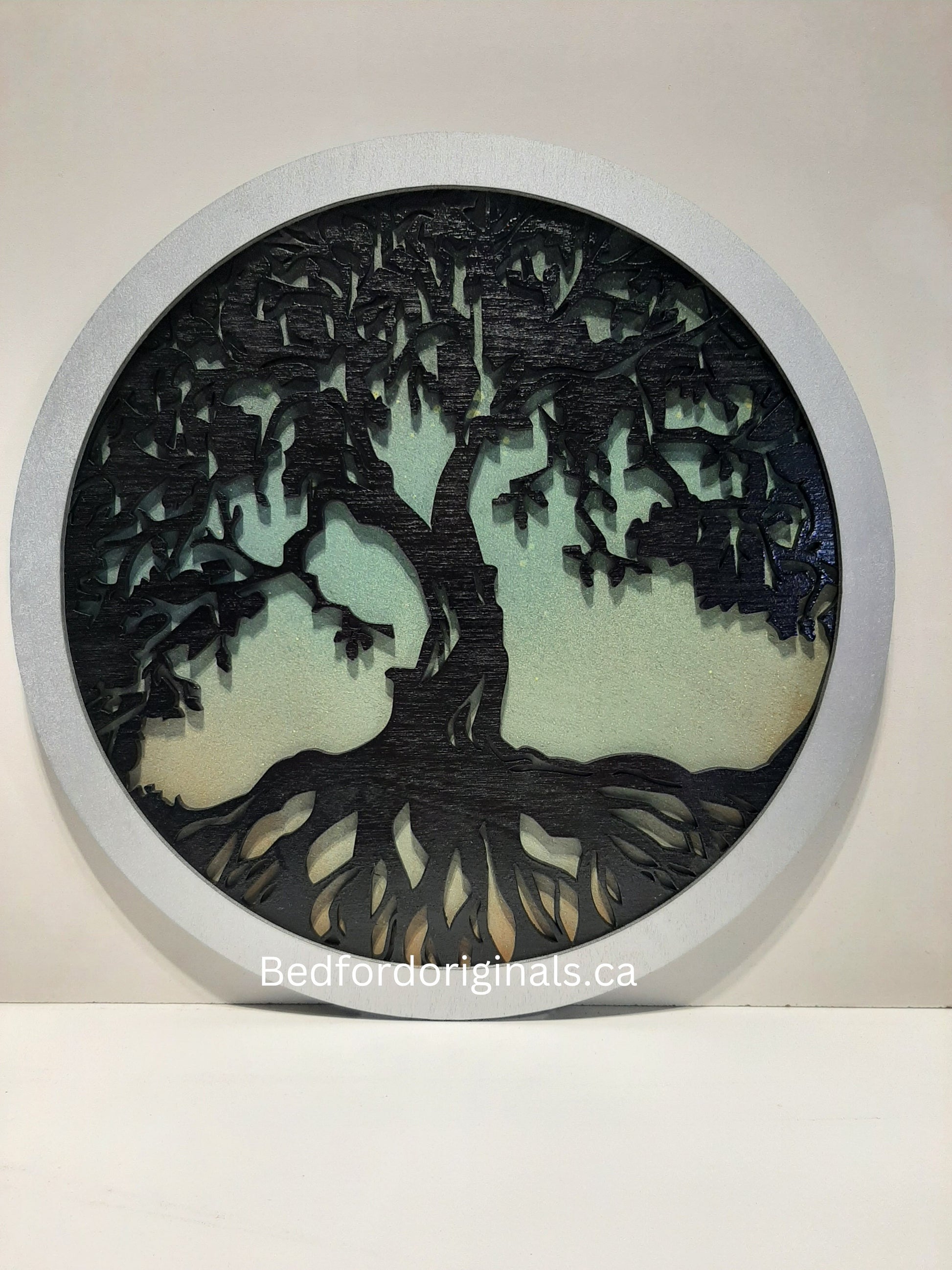 Precision laser cut art piece featuring 3 layers of 1/8" Wood.