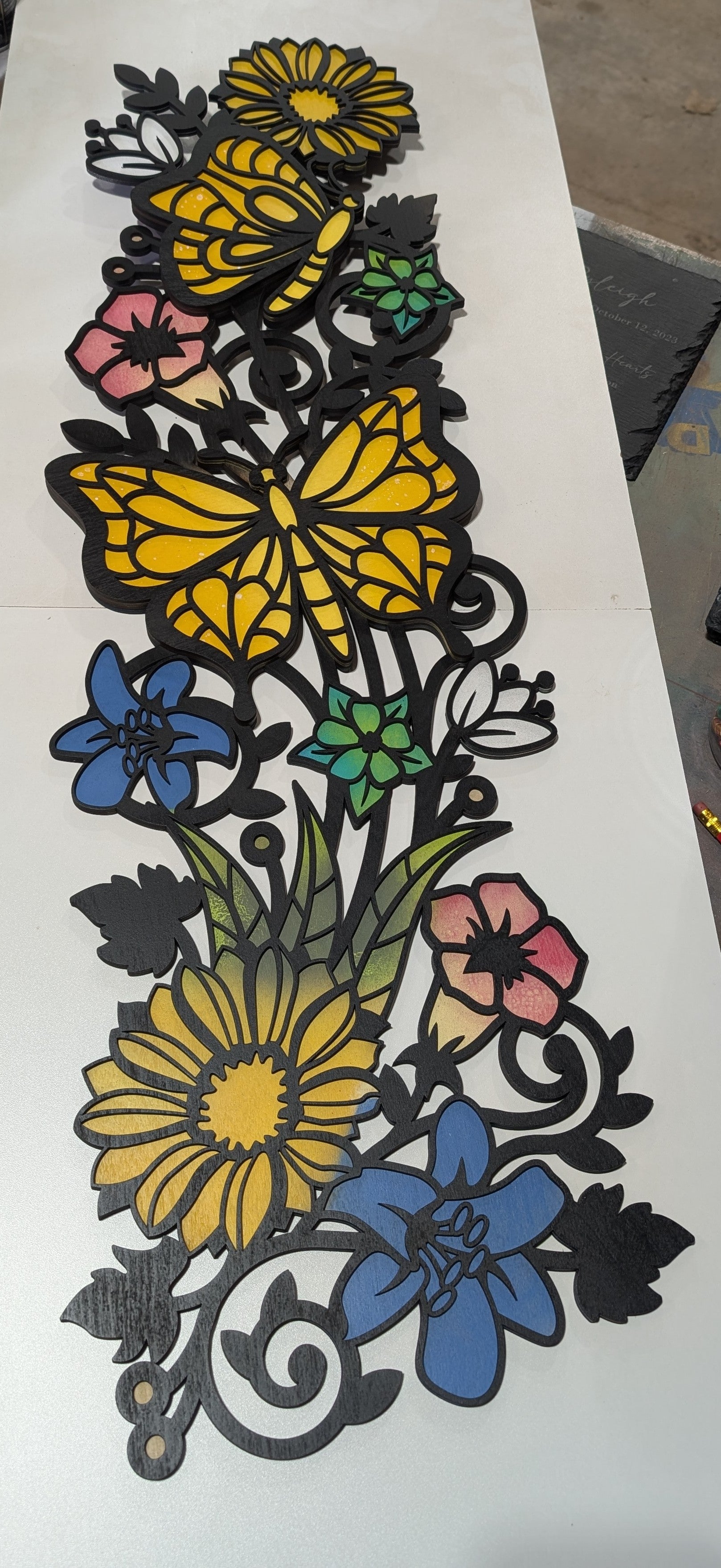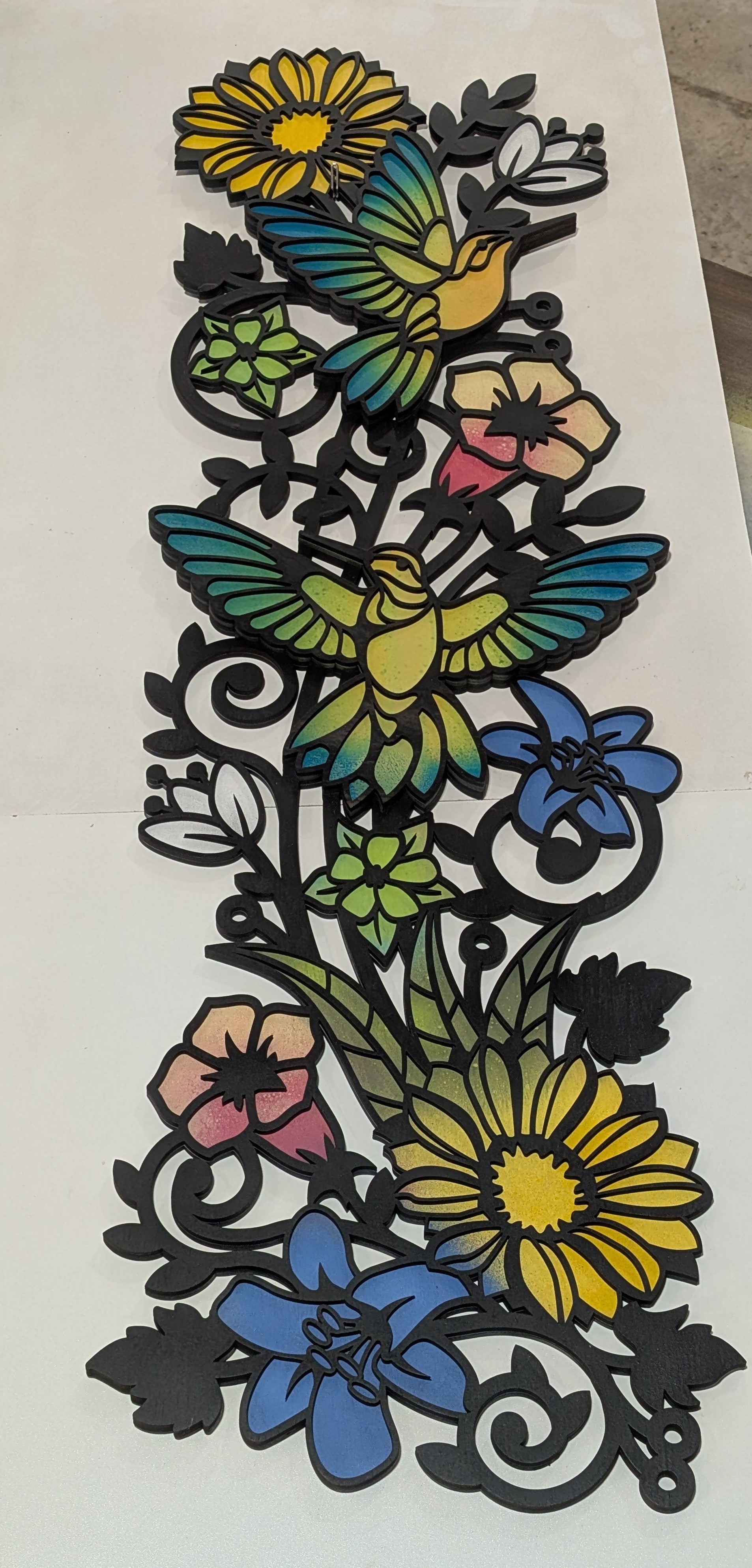 Precision laser cut art piece featuring 2 layers of 1/8" Wood.