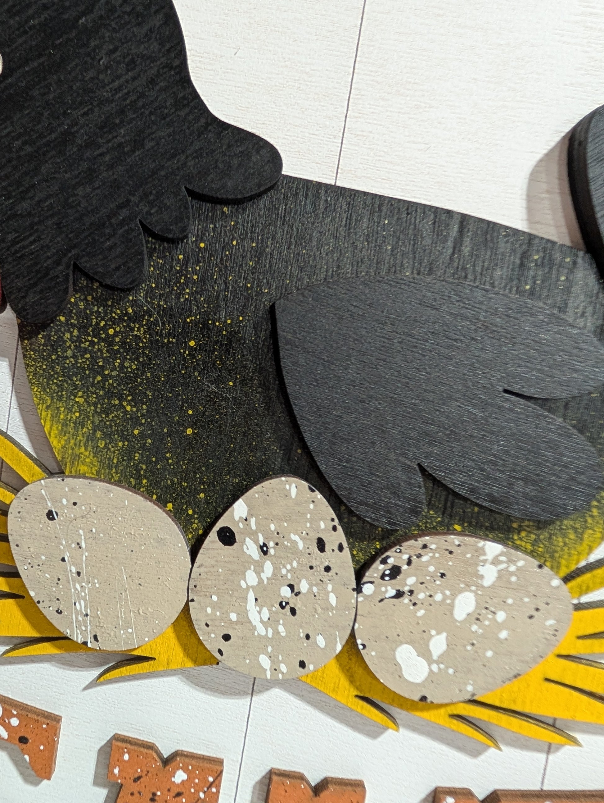 Precision laser cut art piece featuring 2 layers of 1/8" Wood. This beautiful piece would be great for anyone with farm style decor or if you sell eggs!