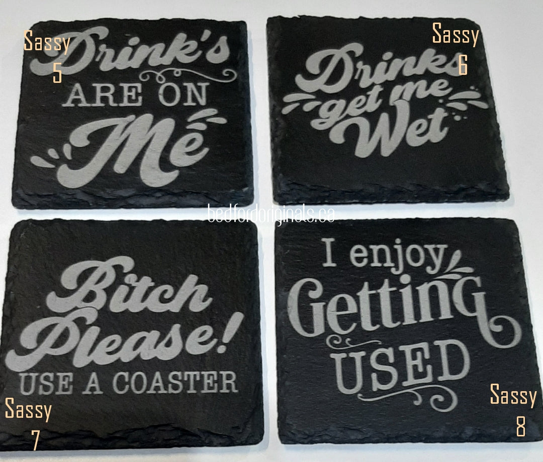 These slate coasters have 4 foam feet on the back so they won't scratch your table or counter.